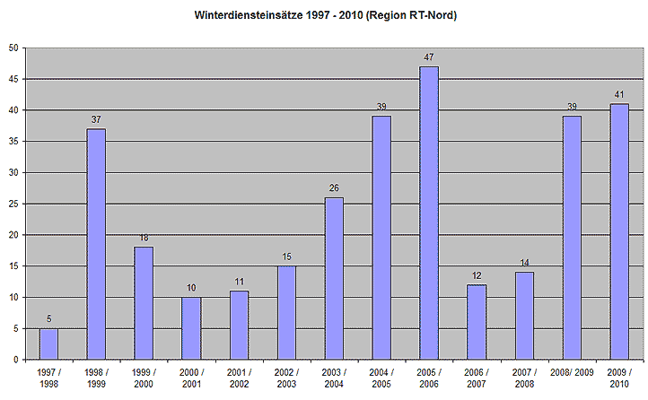 Winterdiensteinsätze im Jahresvergleich von 1997 - 2010 Region: Reutlingen/Nord